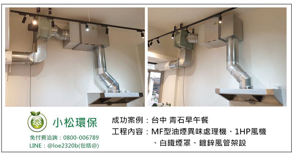 小松環保於台中市 青石早午餐,裝設一式餐飲業油煙/異味處理設備,安裝後