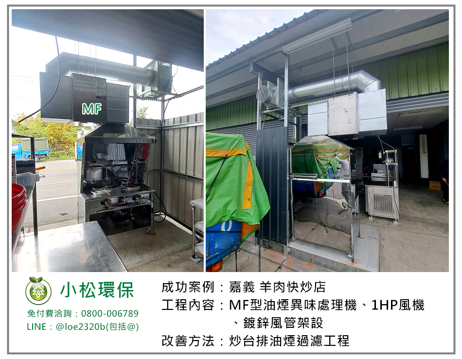 要讓顧客有更好的用餐環境以及減少營業後可能產生的油煙問題,嘉義某羊肉店業者在搬家籌備階段時就和小松接洽,規劃與安裝整套排油煙設備。