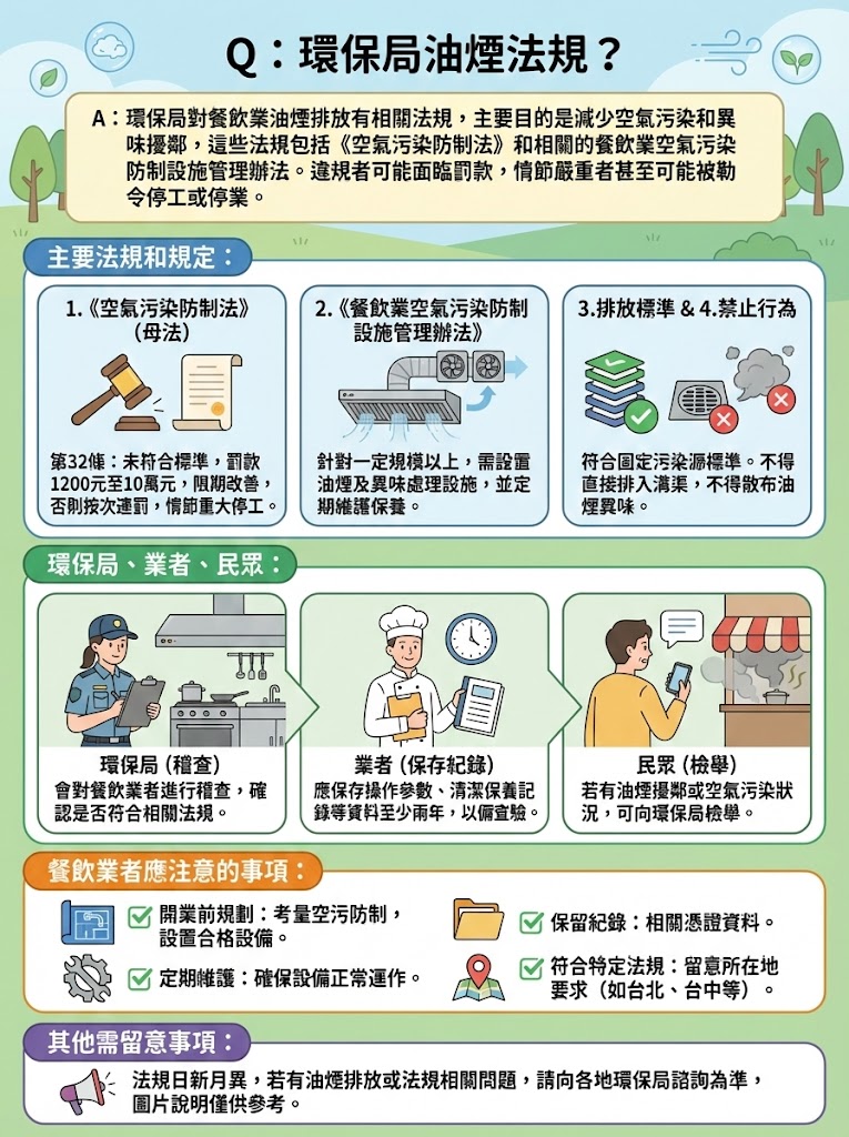 ﹡ 除了法規要求,業者也應積極配合環保措施,減少油煙對環境和居民的影響。